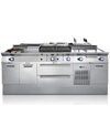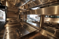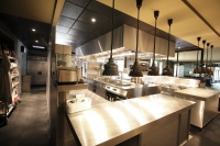De keuken is voorzien van de volgende high-class afwerkingen: • Gehele keuken volledig maatwerk RVS • Alle werkbladen zijn naadloos op locatie gelast • Werk- en spoelbladen zijn vervaardigd uit 2 mm dik RVS en zijn tot 80 mm opgedikt • Blokprofielen 250 mm hoog en afgeschuind • RVS passe onderlijmd met aluminium en omega • Deuren en laden voorzien van soft-stop • Onzichtbare consoles • Spoelbakken met A.V.S. (Anti verstoppingssysteem) • RVS grote kiep afval units • RVS naadloos geperste 1/1 GN geleidingsystemen • Eiland etagère 100 mm dik incl. salamander schap • Salamander met bord detectie systeem • High-Power steakgrill • Inductie afzuiginstallatie (energie besparend) • RVS uitschuifbaar schap t.b.v. vacuümmachine op zware telescoop geleidingen met soft-stop • Energie zuinige koel- en vieswerkbanken, voorzien van 90 mm isolatie (E.I.A. & 3 jaar volledige garantie) • Ultra efficiënte spoelkeuken met voorspoelmachine. Voorzien van een grote spoelbak 700 x 460 x 300 mm met A.V.S. (Anti verstoppingssysteem) 3-Delig filter
